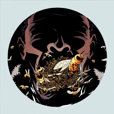 This 3" circle sticker features Candyman and his bees from the horror movie poster series.