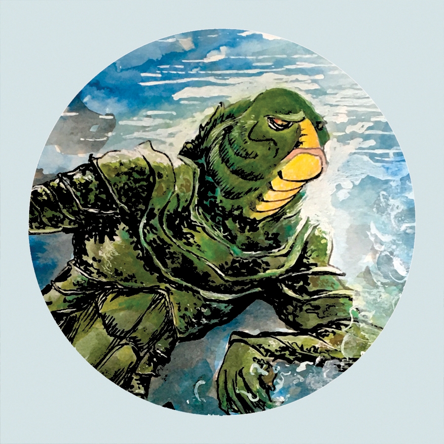 This 3" circle sticker features the Creature from the Black Lagoon from the horror movie poster series.