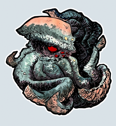 This die cut 3" x 3" sticker features the Elder God known as Cthulhu .