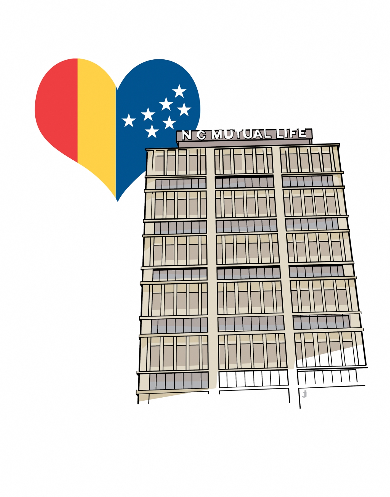 Part of the Love Durham series, this print features the NC Mutual Building.