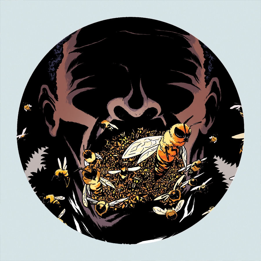 This 3" circle sticker features Candyman and his bees from the horror movie poster series.