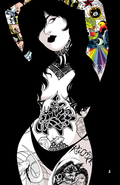 Inked in a homage to the classic tattooed pin-up girl.