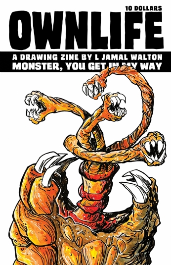 Ownlife: Monster, You Get In My Way is a 32-paged zine featuring kaiju and other giant monster illustrations by L Jamal Walton.